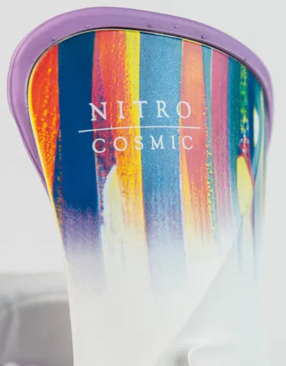 The 3° Canted Footbed aligns your stance naturally, easing strain on your knees and hips, so you can ride longer with less fatigue. Paired with Nitro’s 2x4 Mini Disc with Angle Lock, Board Saver Technology, and Cable Reinforced Connectors, the Cosmic is built to be light, durable, and performance-ready.