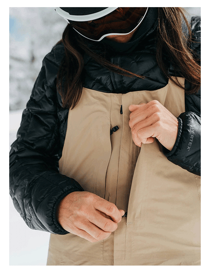 Designed in collaboration with pro-rider Kimmy Fasani, the women's Burton [ak] GORE-TEX Kimmy 2L Bib Pant keeps the powder out without sacrificing accessibility. Design features tailored to Kimmy's riding needs include a zip-out seat that let riders take care of business while in the backcountry far from the nearest commode. Backcountry-specific details keep you comfortable, visible, and dry whether you're riding or on the trail.